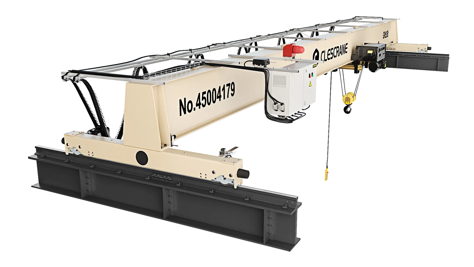 Clescrane ofrece un grúa viajera, con dos polipastos de cable,un SWL es 50t y otro SWL es 25t, levantando grandes moldes. Para ayudar a completar esta ardua tarea de procesamiento. Esta grúa puede operar dos polipastos en la grúa al mismo tiempo, e incluso puede usarlos al mismo tiempo en función de la forma y el tamaño de la carga a transportar. Durante la operación en serie, el polipasto se mueve en paralelo en la dirección del objetivo a la misma velocidad. Incluso la carga de cada gancho no es igual, la sincronización de elevación es efectiva. Esta función se basa en la ubicación conocida de los dos ganchos. La velocidad de elevación común de los ganchos está limitada en función de la velocidad de elevación más lenta.