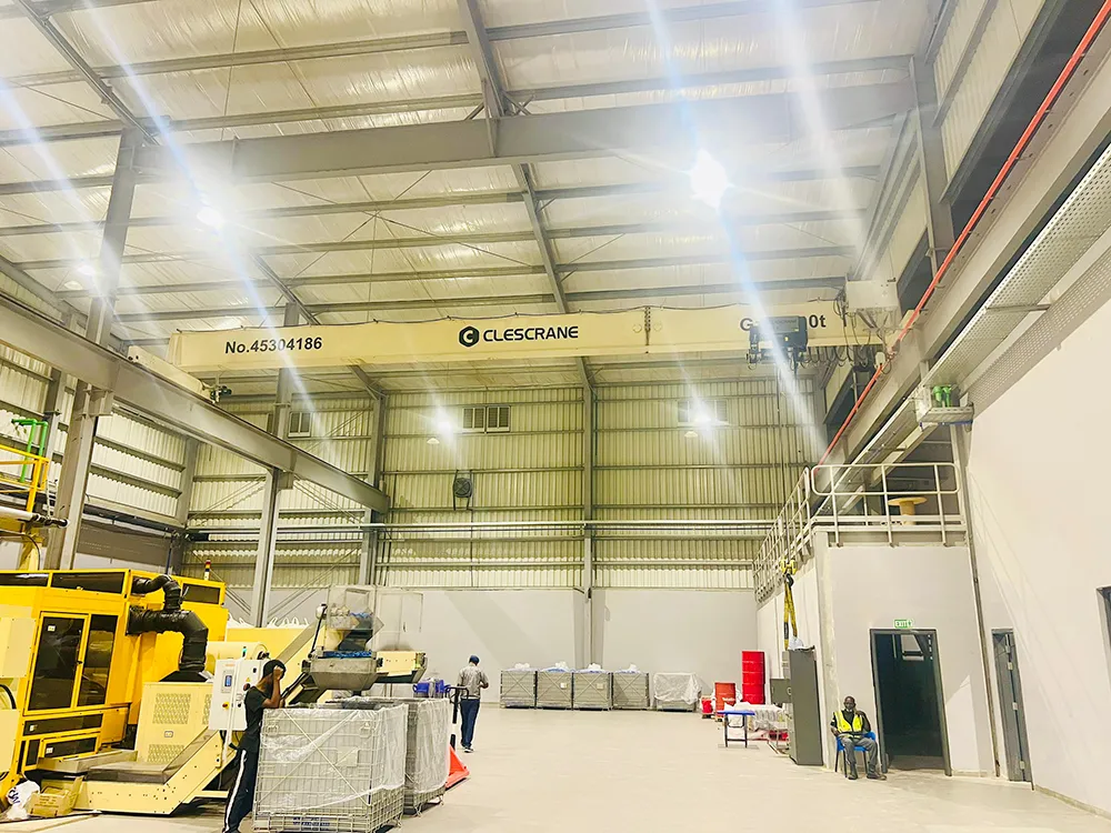 Un cliente de larga data en Ghana volvió a elegir a CLESCRANE y encargó una grúa puente de 10 toneladas (CHS10t-16m-7,35m, control colgante A5/M5) para su nueva línea de producción de moldeo por inyección equipada con un sistema Husky. La confianza continua de nuestros clientes sigue siendo nuestra mayor motivación. El cliente final, Blow Group of Companies, es uno de los grupos industriales líderes en África Occidental, con una amplia gama de productos que abarcan bebidas (refrescos con y sin alcohol), agua mineral (PET/vidrio), envases de PET (preformas y tapones), envases flexibles (extrusión de PE, películas multicapa, láminas de PP, termoformado, termoformado al vacío) y conversión de papel tisú (rollos de papel higiénico, papel de cocina, servilletas y pañuelos de bolsillo). Este nuevo proyecto de moldeo por inyección supone un paso importante en la mejora de sus capacidades de envasado de alta precisión.