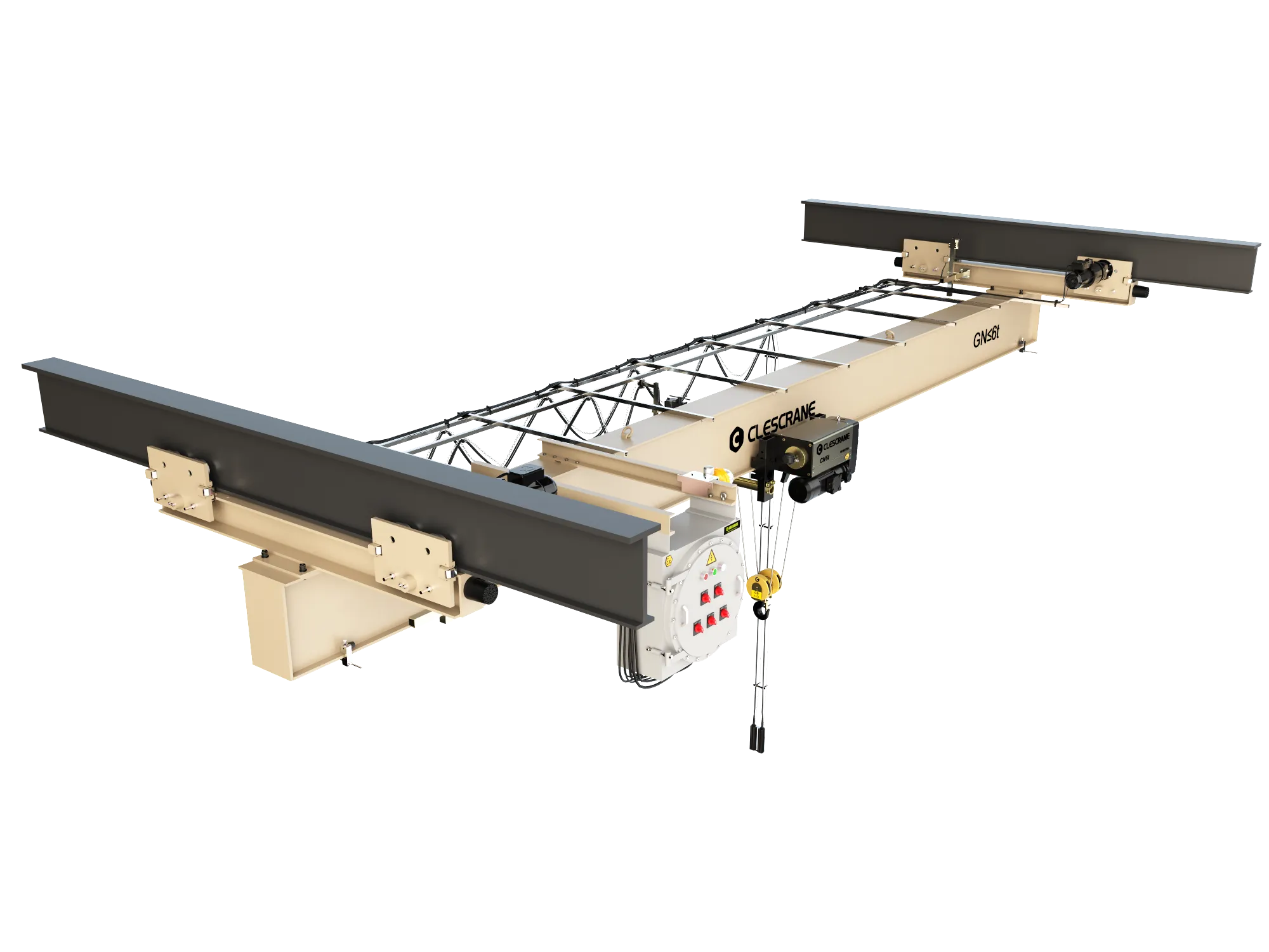 Para cumplir con los estrictos requisitos de protección contra explosiones del proyecto, todos los motores de elevación y desplazamiento suministrados por CLESCRANE están equipados con motores antideflagrantes de Euromotori (Italia), y los frenos son de COEL (Italia), lo que garantiza una excelente seguridad y estabilidad. Debido a las limitaciones de espacio del sitio, optimizamos el diseño de las vigas principales aumentando la altura en 400 mm para maximizar el espacio libre y mejorar la comodidad operativa del cliente.