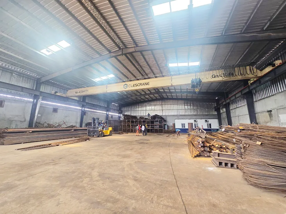 El 29 de enero de 2024, Senegal Metal Company volvió a contactar a CLESCRANE con una nueva solicitud de una grúa puente monorraíl de 10 toneladas para su almacén en Brazzaville, Congo. CLESCRANE respondió rápidamente con una solución personalizada: la grúa puente monorraíl CHS 10T-24,7 m H=5,37 m A5. La viga principal se diseñó con una configuración de 8 m + 8 m + 8,7 m, y la distancia de recorrido fue de 37,7 metros. El sistema eléctrico se diseñó para ser simple y eficiente, compatible con operación manual y por control remoto para garantizar la facilidad de uso.